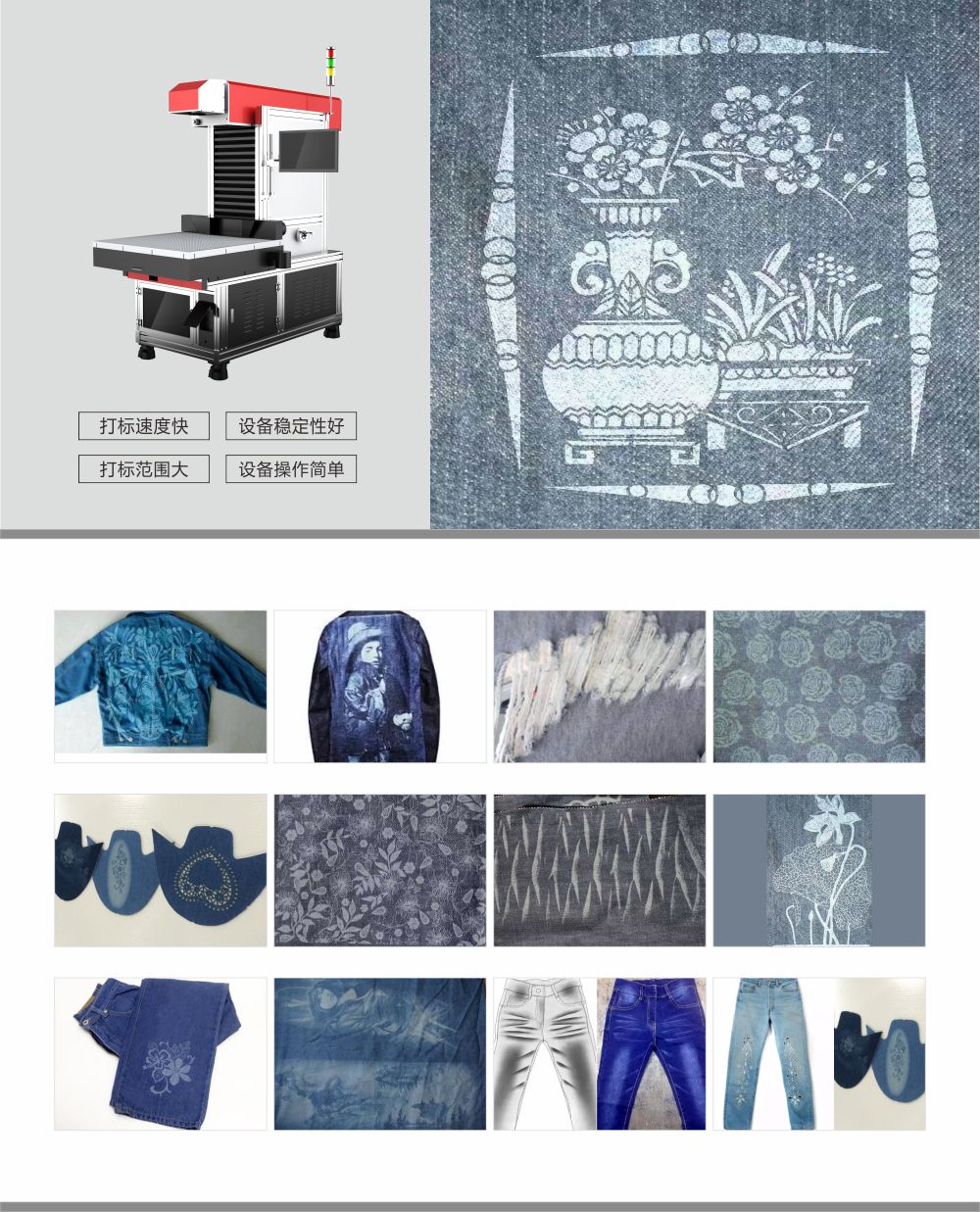 激光打標(biāo)機(jī)在牛仔水洗、破洞、雕花上的應(yīng)用